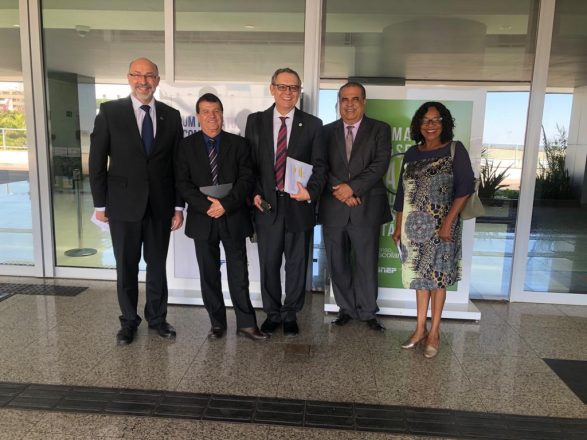 A Diretoria Executiva da AFEESMIG reuniu-se com o Presidente do INEP – Instituto Nacional de Estudos e Pesquisas Educacionais Anísio Teixeira, Sr. Alexandre Ribeiro Pereira Lopes, com intuito de apresentar a associação e discutir assuntos de interesses das filiadas. Além do Sr. Alexandre, participaram também a Diretora de Avaliação da Educação Superior – DAES, Profº Sueli Macedo e o Chefe de Gabinete, Sr. Marcelo Silva Pontes. O encontro aconteceu no dia 11/09, quarta-feira, na sede do INEP em Brasília.